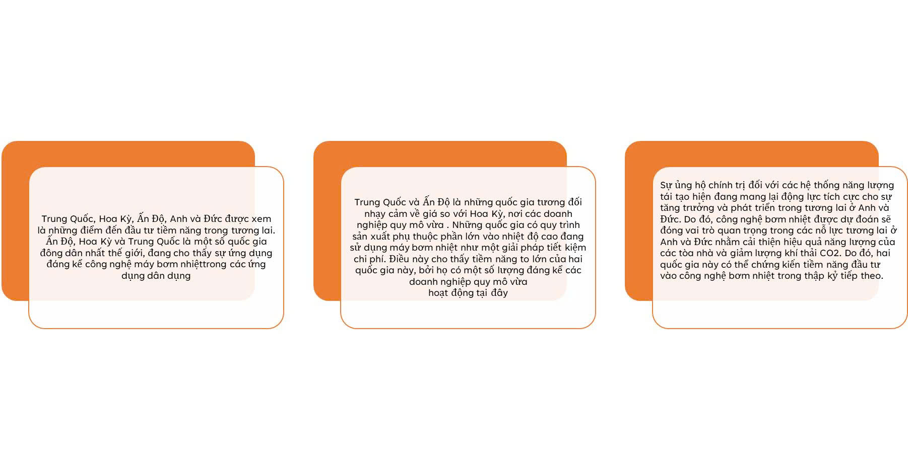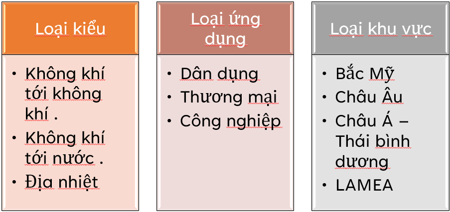 Việc áp dụng máy bơm nhiệt hoặc hệ thống sưởi ấm, làm mát không gian và các ứng dụng khác. Theo khu vực, nghiên cứu được phân tích trên khắp Bắc Mỹ, Châu Âu, Châu Á – Thái Bình Dương và LAMEA