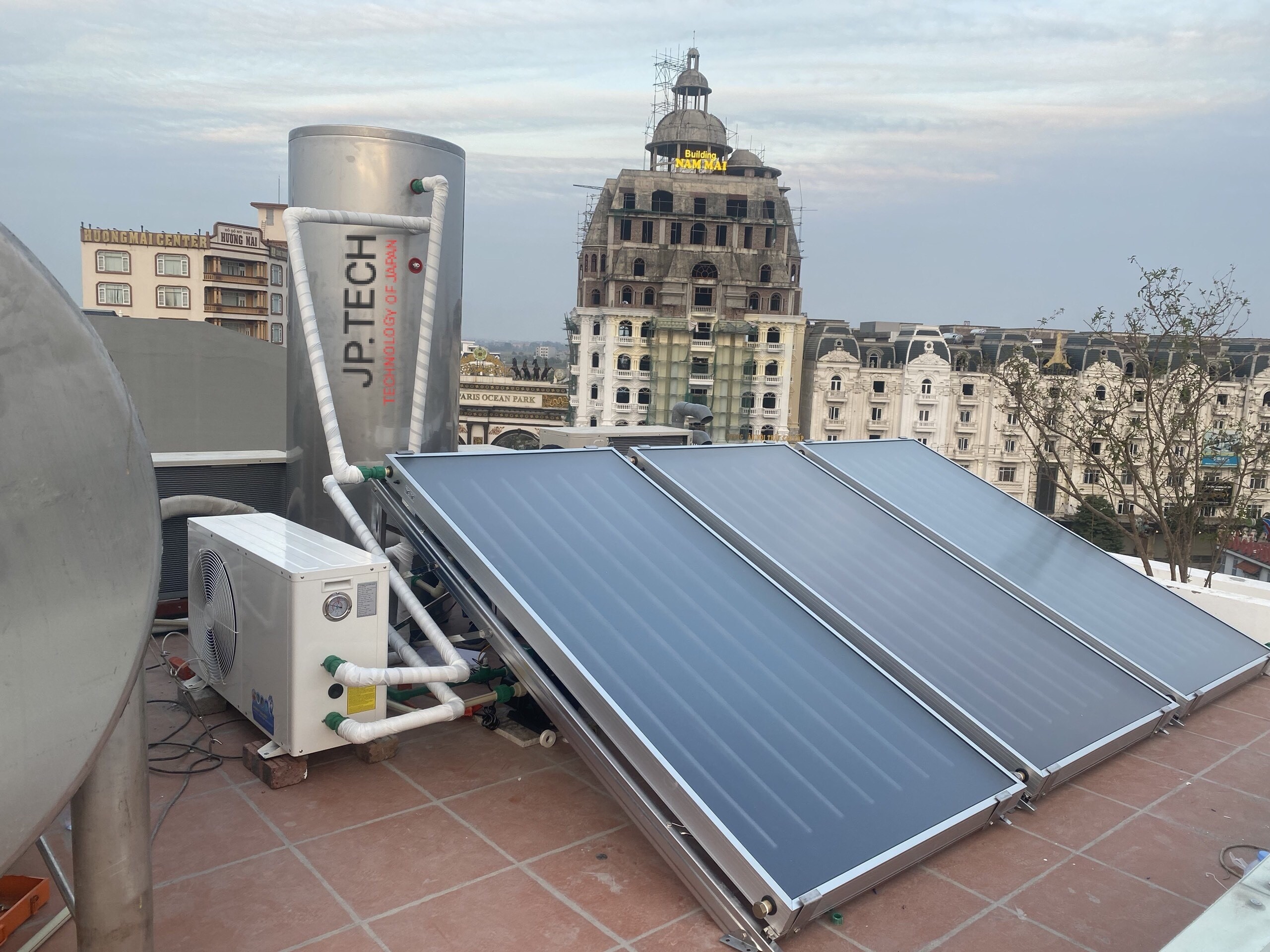 ƯU ĐIỂM TUYỆT VỜI KHI KẾT HỢP MÁY NĂNG LƯỢNG MẶT TRỜI CHỊU ÁP VỚI BƠM NHIỆT.