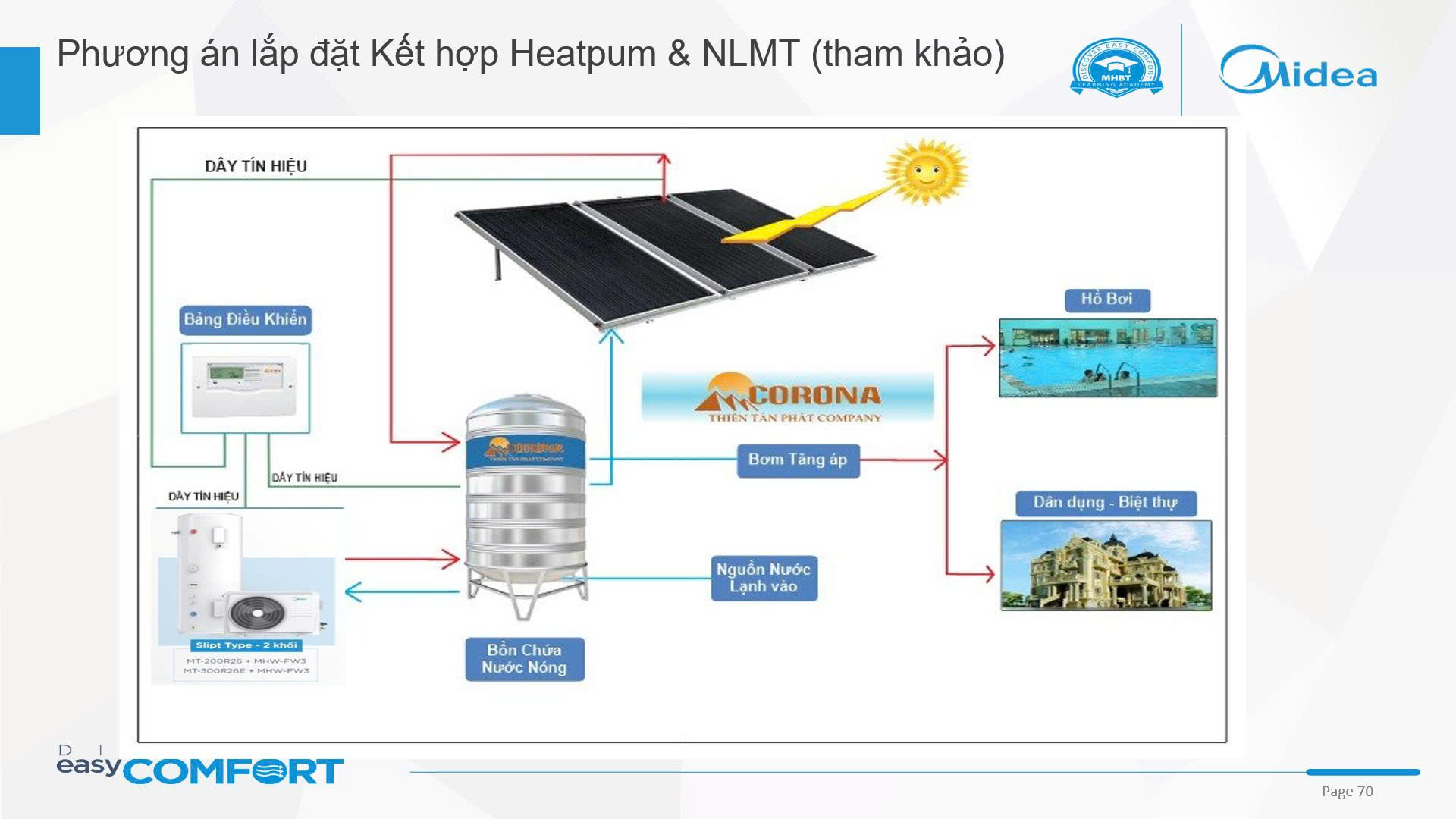 – Bơm nhiệt hoạt động ổn định bất kể thời tiết (cả ban đêm hoặc mùa đông), khắc phục nhược điểm phụ thuộc ánh nắng của máy năng lượng mặt trời.