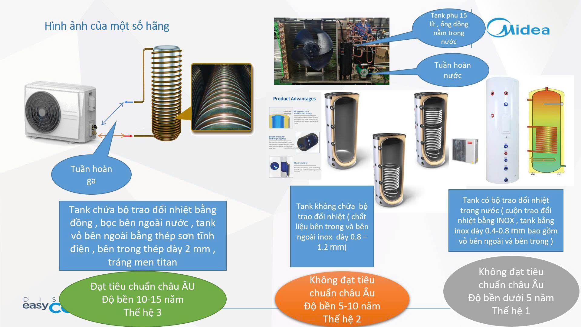 – Công nghệ bơm nhiệt : tuần hoàn ga , tuần hoàn nước , bộ trao đổi nhiệt nằm trong nước ,bộ trao đổi nhiệt nằm ngoài nước .