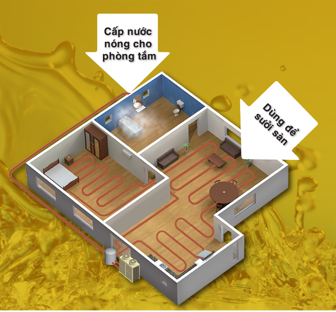 - Với mạch “flash injection” cùng máy nén inverter hiệu suất cao, bơm nhiệt có thể cung cấp nước nóng lên tới 70°C. Hơn nữa, hệ thống còn duy trì hiệu suất tốt hơn ngay cả khi nhiệt độ ngoài trời thấp.