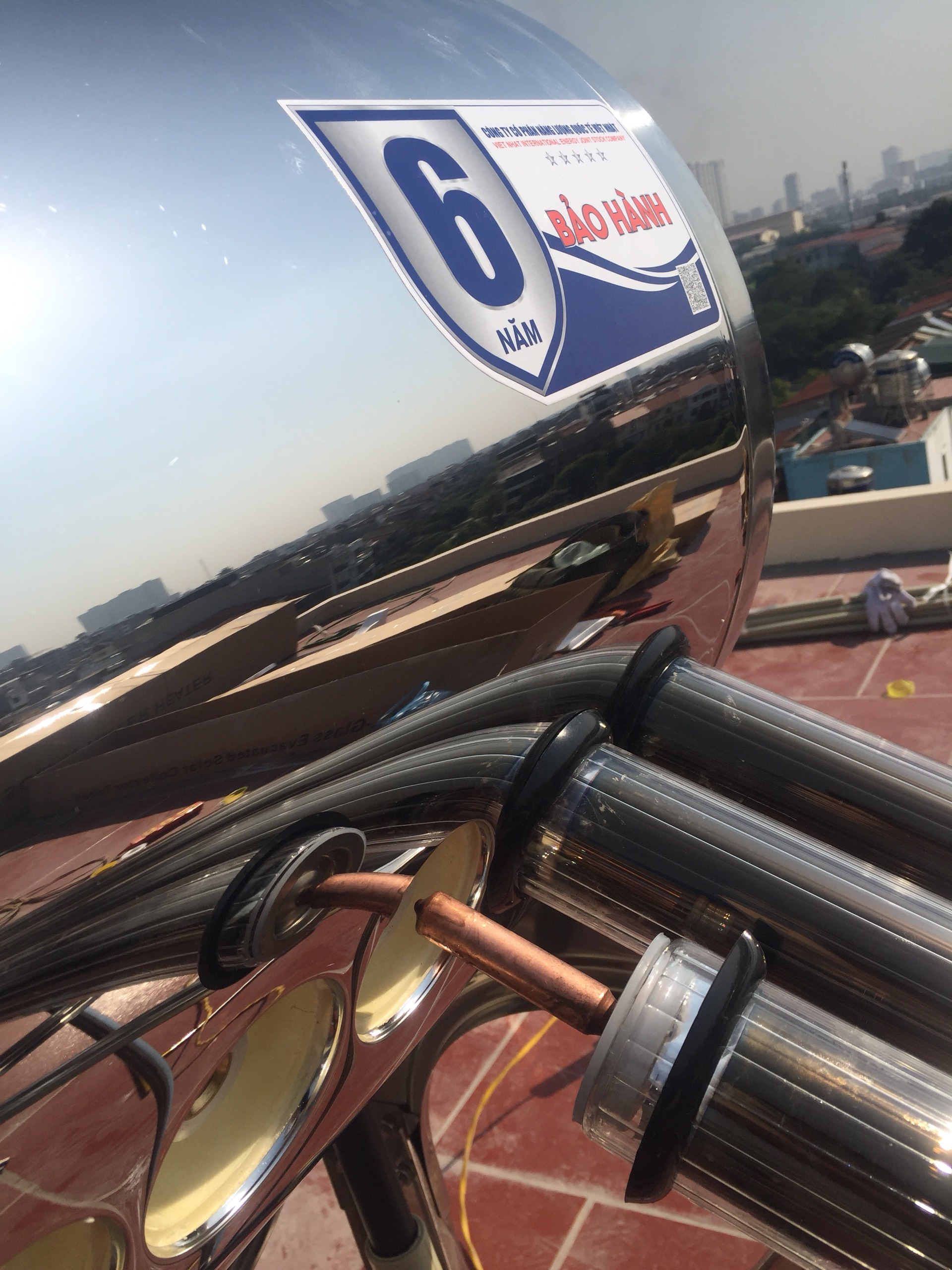 => Ống Đồng được sản xuất đặc biệt làm giảm phản xạ, tăng khả năng hấp thụ năng lượng, CHỐNG MƯA ĐÁ. Hiệu suất hấp thụ nhiệt lên đến 98%.