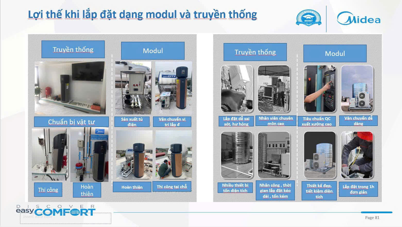 Giải pháp lắp đặt Modul được Mr Bơm Nhiệt triển khai tại Việt Nam trong 3 năm nay . Với các dự án , công trình có mặt bằng rộng rãi để vận chuyển , dùng xe chuyên dụng cẩu hệ thống nước nóng trung tâm dạng modul thì đây là giải pháp rất hiệu quả cho công trình .