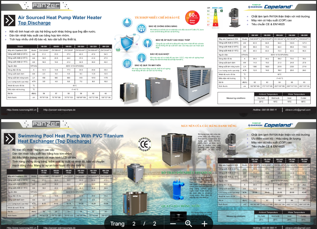 Mr Bơm Nhiệt giới thiệu tài liệu : Catalogue bơm nhiệt Panzer theo link