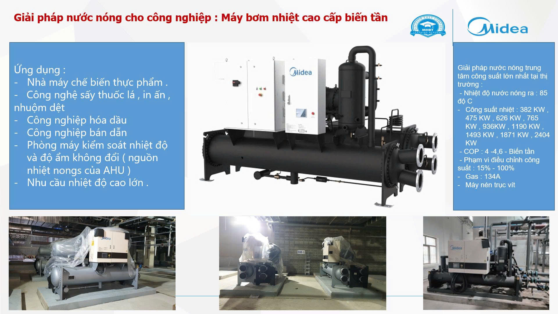 Lợi ích từ công nghệ bơm nhiệt mang lại Ưu điểm 1: Máy bơm nhiệt heat pump làm việc liên tục giúp tiết kiệm điện năng lên đến 75% Ưu điểm 2 : Đáp ứng nhu cầu lưu lượng nước nóng lớn lên đến 100m3 Ưu điểm 3: Thân thiện với môi trường và an toàn cho người sử dụng Ưu điểm 4: Tiết kiệm chi phí đầu tư hạ tầng điện .Giảm công suất sử dụng cho hệ thống nước nóng lên đến 10 lân giúp cho giảm mức đầu tư hệ thống điện như dây điện , trạm biến áp , hệ thống đóng căt, máy phát điện Ưu điểm 5: Dễ dàng trong việc lắp đặt, sửa chữa và bảo dưỡng Lợi ích mang lại từ bơm nhiệt so với các dạng máy khác Máy nén (1kW điện) bơm ( ép ) 3kW nhiệt từ nhiệt độ môi trường , công suất đầu ra là 4kW nhiệt cung cấp cho nước Máy nước nóng bơm nhiệt có thể tiết kiệm đến 75% điện năng Với thí nghiệm tại môi trường 20 độ C , nhiệt độ nước vào 15 độ c và nước nóng 55 độ C . Thực tế đung nóng 1 tấn nước cần 40.000 Kcal . Với các nguyên liệu : diesel , gas, thanh đốt điện trở , bơm nhiệt , năng lượng mặt trời như sau: Các ứng dụng bơm nhiệt trong cuộc sống Liên hệ với chúng tôi: Nhà phân phối và nhập khẩu bơm nhiệt Công ty cổ phần thương mại kỹ thuật TS Việt Nam
